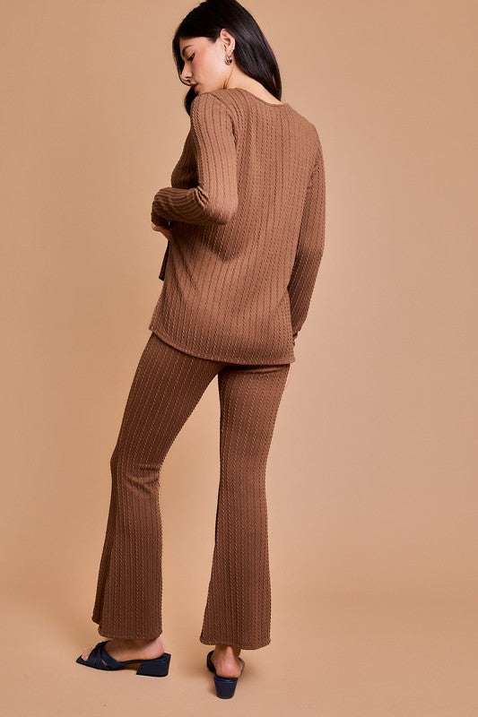 Naglan Long Sleeve Top and High Waist Pants - Camel